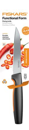 Zosilnená čepeľ pre dobré vyváženie noža a jeho pevnosť. Dodatočne leštené ostrie zvyšuje výkon čepele. Možno umývať v umývačke riadu.