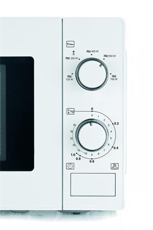 Voľne stojaca mikrovlnná rúra - objem 20 litrov - výkon: 700 Watt - odnímateľný otočný tanier - 35 minútový časovač so zvukovým signálom - 5 stupňov výkonu - mechanické ovládacie tlačidlá - ohrev, rozmrazovanie - biele prevedenie