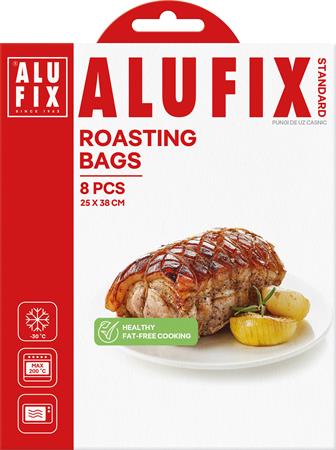 fólia na pečenie v tvare vrecka slúži na pečenie a dusenie všetkých druhov mäsa, zemiakov a zeleniny