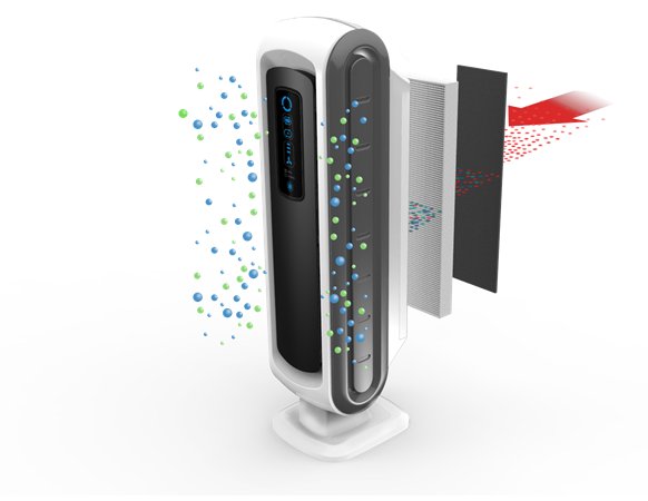 - filter HEPA odstraňuje zo vzduchu vírusy (napr. chrípka) a iné patogény a alergény (peľ, prachové roztoče, plesňové spóry, zvieracie chlpy) a znižuje koncentráciu prachu vo vzduchu