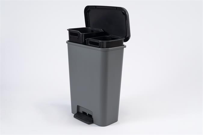 Odpadkový kôš, pedálový, hranatý, 2x23 l, CURVER "Compatta Duo", tmavosivá