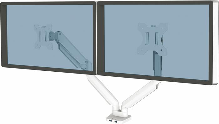 Držiak na monitory pre dva monitory, FELLOWES „Platinum Series™ Dual“, biely