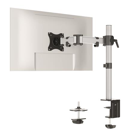 Držiak monitora pre 1 obrazovku, s jedinečnou možnosťou montáže, pomocou skrutky a stolovej svorky - výšku, uhol sklonu a polohu monitora možno jednoducho a individuálne nastaviť, čím napomáha ergonomickej práci - možno ho jednoducho otáčať o 360°, takže monitor môžete pohodlne používať aj v režime na výšku alebo na šírku - rameno možno vysunúť až na 43 cm a otočiť až o 180° pomocou troch pántov - plynule nastaviteľnú výšku na 45 cm vysokom stĺpe - s univerzálnym VESA štandardná veľkosť (75 x 75 mm alebo 100 x 100 mm) - veľkosť 27" a 8 kg - pre štandardné monitory do