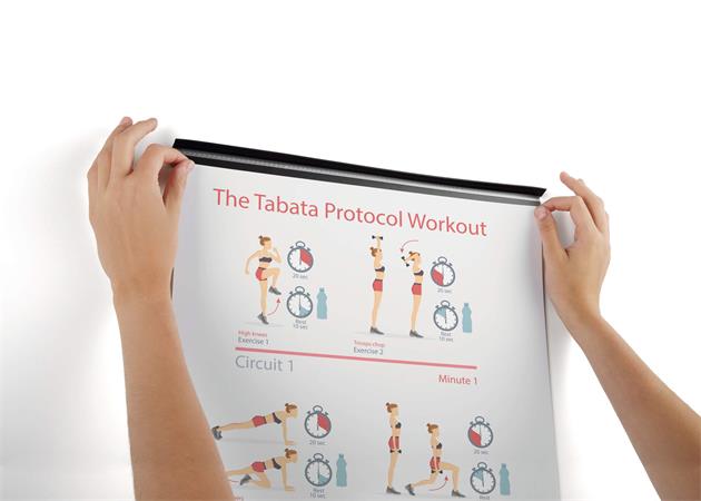 - magnetická zaklapávacia lišta pre jednoduchú prezentáciu vo forme pásky