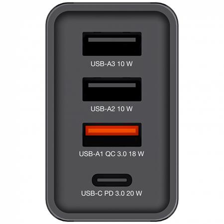 Sieťová nabíjačka, 1xUSB-C PD (20W), USB-A QC 3.0, 2xUSB-A (10W), VERBATIM, čierna