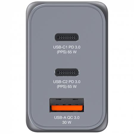 Podporuje súčasné nabíjanie až 3 zariadení (celkový výkon max. 65 W) v tenkom dizajne veľkosti dlane. So svojimi skladacími americkými stopkami a vymeniteľnými zástrčkami pre EÚ a Spojené kráľovstvo je dokonalým spoločníkom na cesty. -Gallium Nitride (GaN) technológia: poskytuje vysoký výkon, rýchle a efektívne nabíjanie a produkuje menej tepla -2 x USB-C® PD 3.0 až 65 W -1 x USB-A QC 3.0 až 30 W - super rýchle nabíjanie s USB Power Delivery 3.0, PPS a Quick Charge 3.0 - technológia programovateľného napájania (PPS) poskytuje správne množstvo energie pre ideálne nabíjanie - vyrobené z kvalitných materiálov odolných voči ohňu - ochrana proti nadprúdu - ochrana proti prepätiu - ochrana proti skratu obvod - ochrana proti prehriatiu - materiál: Plast Plášť: PC Ohňovzdorný materiál - rozmery: 58,7 x 47,3 x 29,4 mm (Š x V x H) - hmotnosť: 105 g - bezplastový obal - obsah balenia: nabíjačka GaN EU adaptér UK adaptér Stručný sprievodca umiestnením
