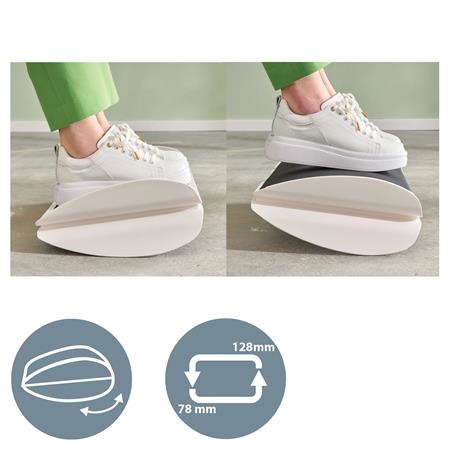 Podnožka stola Leitz Ergo je ideálna na vytvorenie pohodlného a aktívneho pracovného priestoru. Kancelársky podnožka, navrhnutá tak, aby zaistila maximálny komfort pri sedení, spája výhody výkyvnej a výškovo nastaviteľnej podnožky. Výškovo nastaviteľná kancelárska opierka nôh má 2 výškové nastavenia a platformu, ktorá je na jednej strane plochá a na druhej strane zakrivená, aby sa zabezpečilo správne ergonomické držanie tela. Počas práce hojdajte nohami pre zdravý krvný obeh a vyššiu efektivitu. Táto štýlová, minimalisticky navrhnutá opierka na nohy s matným povrchom prispieva k dizajnu aktívnej pracovnej stanice, čím má pozitívny vplyv na pohodu. V kombinácii s ďalšími produktmi Leitz Ergo poskytuje príjemný a flexibilný pracovný priestor, vďaka ktorému budete aktívny a produktívny počas celého dňa. Ergonomická, výškovo nastaviteľná opierka nôh na podporu zdravého držania tela a zlepšenie krvného obehu správnym podopretím nôh Pomáha znižovať nepohodlie a stuhnutosť pri dlhom sedení Nastaviteľná výška na zaistenie maximálneho pohodlia a správnej polohy sedenia Dve výškové nastavenia (78 mm/128 mm) otočením opierky nôh Húpavý pohyb vás udrží aktívnych a umožní vám pravidelne meniť polohu chodidla Plochá a zakrivená protišmyková platforma pre pohodlné prispôsobenie sa všetkým veľkostiam chodidla Elegantný dizajn dokonale spája funkčnosť s prepracovanosťou Silný a odolný dizajn Rad produktov Leitz Ergo kombinuje štýl s prvotriednou kvalitou na zabezpečenie pohodlného a aktívneho pracovného prostredia