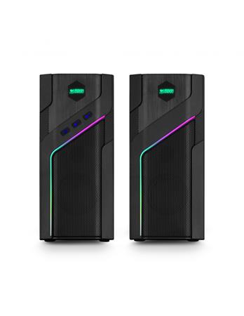 napájanie reproduktorov: USB-A (5V/2A)ľahko použiteľné dotykové tlačidlá (ovládanie podsvietenia)pripojenie: 3,5 mm Jack / Bluetooth 5.1dĺžka kábla: 1,50 metraFrekvenčná odozva: 130Hz ~ 20KHzimpedancia: 4 ohmycitlivosť: 82 ± 3dBRMS: 5 wattov (x2)