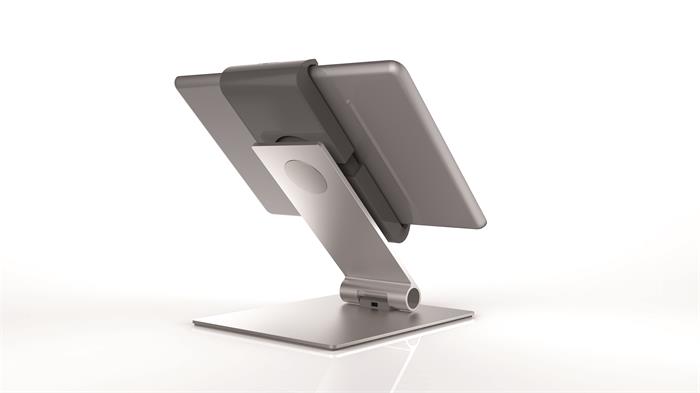 - oblasť použitia: v kanceláriách, verejných budovách, predajných a výstavných priestoroch, na súkromné ??použitie v domácich kanceláriách a kuchyniach atď.- Môže byť použitý pre 7 "-13" tablety- 360° otočný, možno použiť na výšku aj na šírku- s vodidlami kábla: na držiaku je otvor, do ktorého je možné pripojiť nabíjačku- nastaviteľný uhol čítania medzi 0-88 stupňami- veľmi stabilný vďaka vynikajúcim materiálom: oceľový plech, hliník, ABS- možno uzamknúť špeciálnym kľúčom- silné riešenie proti posunutiu tabletu do strán- možnosť dodatočnej ochrany proti krádeži, s káblovým zámkom (nie je súčasťou dodávky)- pogumovaný povrch proti poškodeniu- materiál: hliník- rozmer: 155x242x183 mm (Š x V x H)