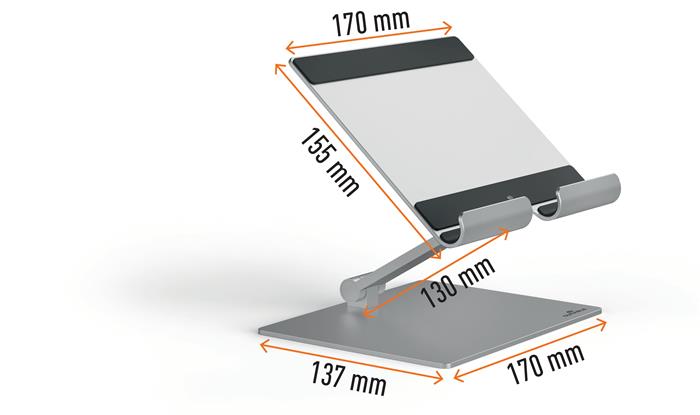 Stojan na tablet, stolový, DURABLE "RISE", strieborná