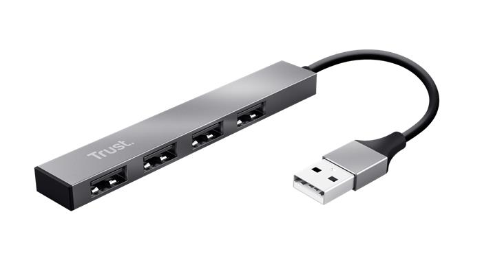 USB HUB, 4 porty, USB 2.0, TRUST "Halyx", strieborná