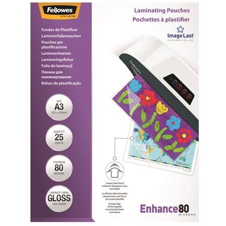 Laminovacia fólia, 80 mikr., A3, lesklá, 25 ks, FELLOWES