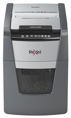 Skartovací stroj, mikrokonfety, 100 listov, REXEL "Optimum AutoFeed+ 100M"