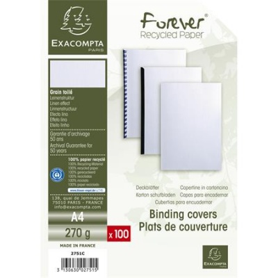 Zadný obal ku špirálovej väzbe, A4, 270 g, kartón s plátennou štruktúrou, EXACOMPTA, biely