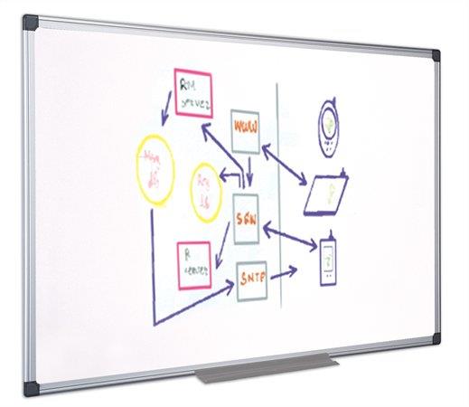 Biela tabuľa, magnetická, smaltovaná, 60x90 cm, hliníkový rám, VICTORIA VISUAL